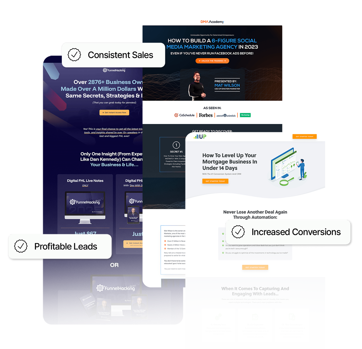 We’ve built hundreds of funnels for our clients inside ClickFunnels, GoHighLevel, and more. From copy > Design > Integrations, if you can dream it, we can build it.